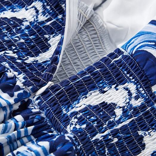 ノースリーブの大人可愛いデザインで、ホワイトとブルーの爽やかな色合いが夏のイベントにぴったり♪
