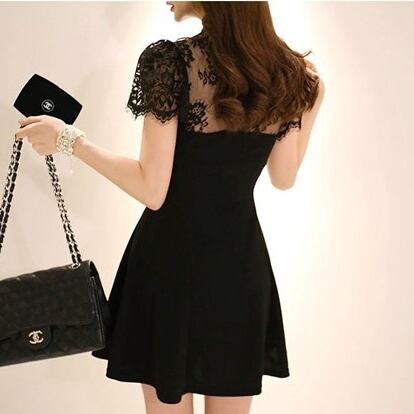 【送料無料】 ワンピース ミニワンピース レース ミニ丈 半袖 セミフレア 韓国 レディース オルチャン かわいい 可愛い キュート 大人可愛い 谷間が見える 異素材ミックス 大人女子 ショート丈 シンプル きれいめ 大人 気品 上品 おしゃれ お洒落 こなれ感 きちんと 大人女子 クール エレガント ミニスカート フェミニン M L XL 黒 ブラック タイト スリム 細身 春 夏 10代 20代 30代 デート 休日 普段使い コーデ トレンド 美脚 脚長 インスタ映え