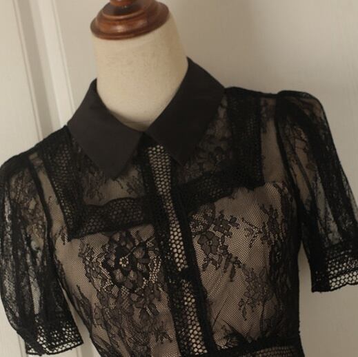 【送料無料】 シースルーミニワンピース シースルーレース パーティードレス韓国 レディース オルチャン 黒 ブラック シャツワンピース フレアワンピース ワンピドレス ミニ丈 ショート丈 半袖 パフスリーブ Vネック 襟付き フレア Aライン レース 刺繍 ウエストマーク ハイウエスト かわいい 大人可愛い きれいめ おしゃれ かっこいい ラブリー キュート 存在感 抜け感 フェミニン 夏 休日 パーティー イベント デート リゾート トレンド 流行 インスタ映え 清楚 S M L