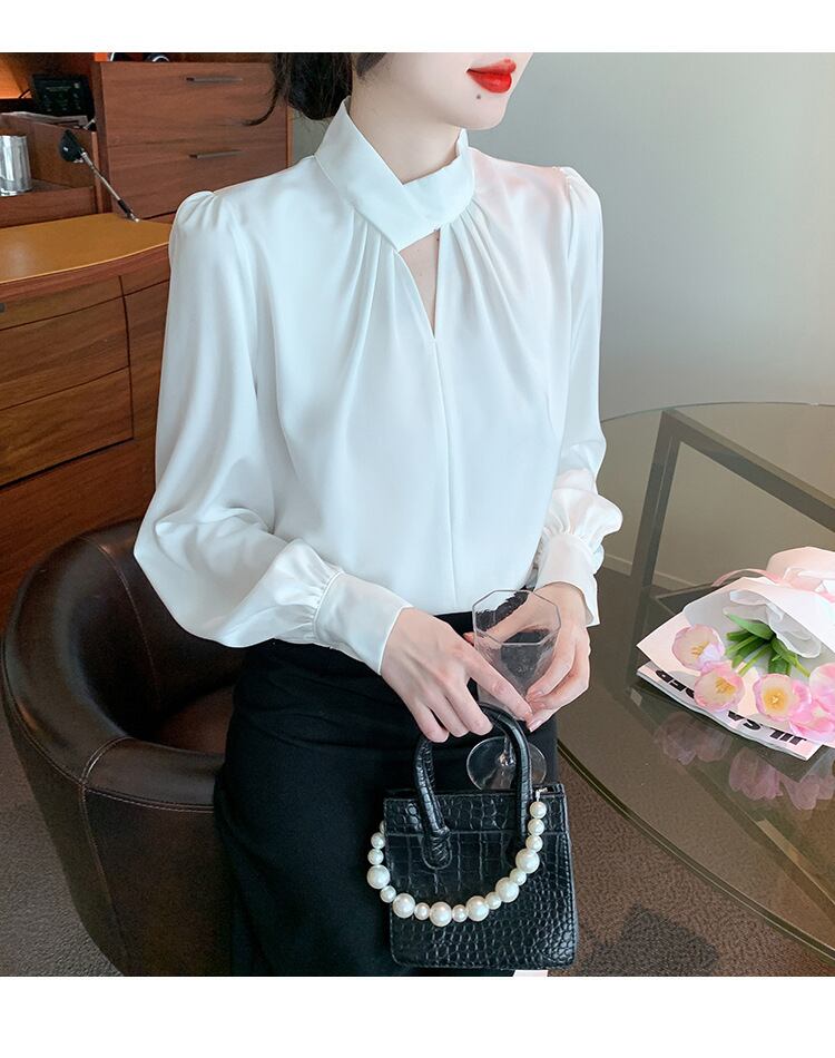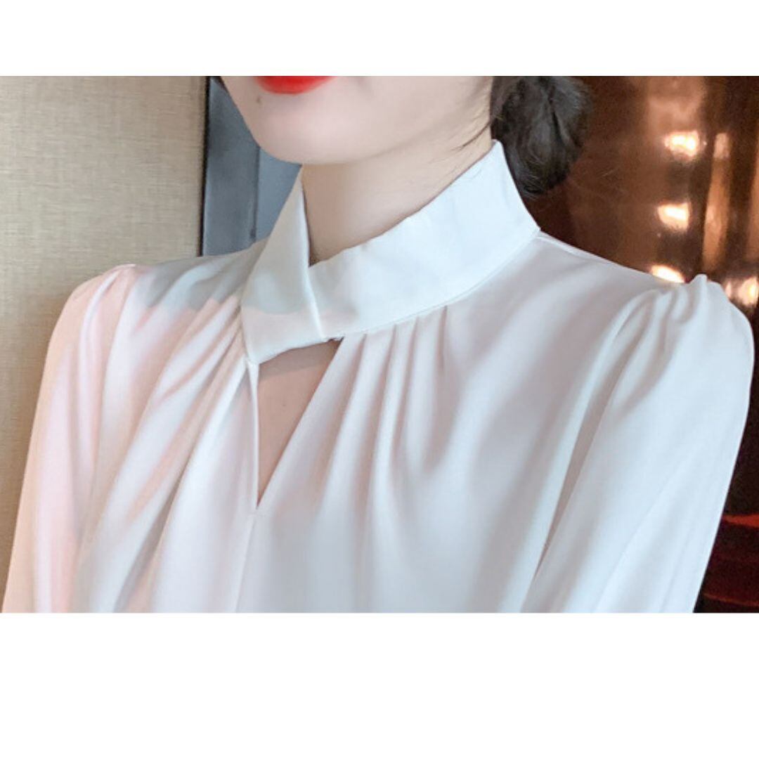 【送料無料】 タックネックブラウス スリット エレガント ブラウス サテン シフォン シャツ 韓国 レディース オルチャン 袖あり 長袖 かわいい きちんと 大人可愛い フォーマル きれいめ シンプル 大人 上品 おしゃれ お洒落 大人女子 こなれ感 ラブリー キュート 主役級 存在感 抜け感 無地 春 夏 20代 30代 40代 オフィス ビジネス OL 通勤 通学 デート 女子会 お泊まり 休日 イベント リゾート 旅行 着回し 普段使い トレンド インスタ映え 2XL 黒 白 着痩せ
