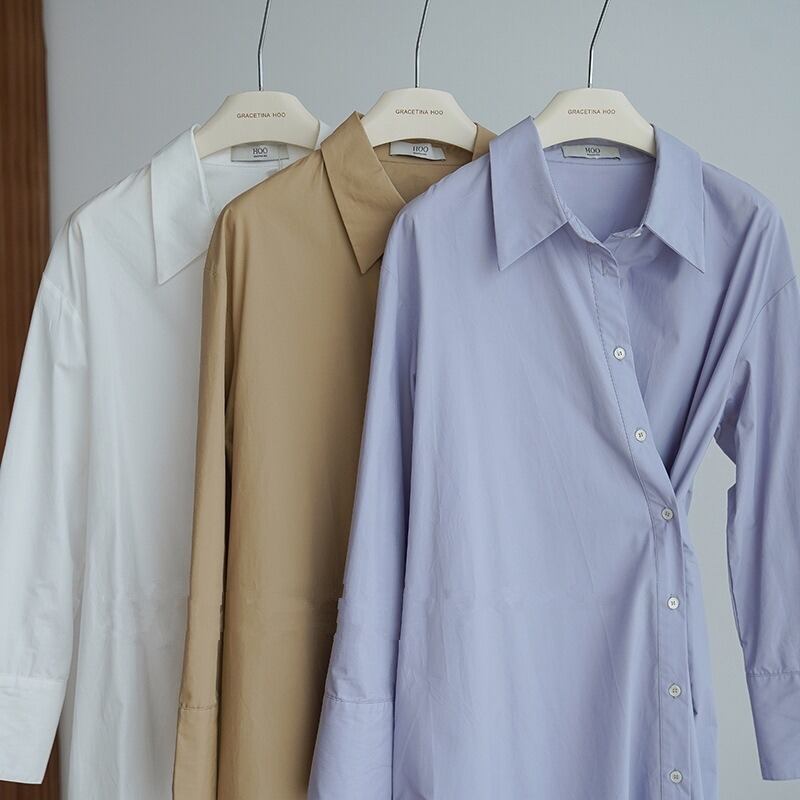 【送料無料】 シャツワンピース アシンメトリー 襟付き 白 韓国 レディース オルチャン ホワイト 青 水色 ベージュ 白シャツ 7分袖 七分袖 Vネック 襟付き フレア Aライン ボタン かわいい 大人可愛い きれいめ おしゃれ こなれ感 ラフ ラブリー キュート エレガント フリーサイズ モダン ゆったり オフィス ビジネス 通勤 通学 抜け感 フェミニン アクティブ ベーシック ナチュラル オトナ女子 大人女子 無地 夏 休日 カフェ デート トレンド 流行 インスタ映え