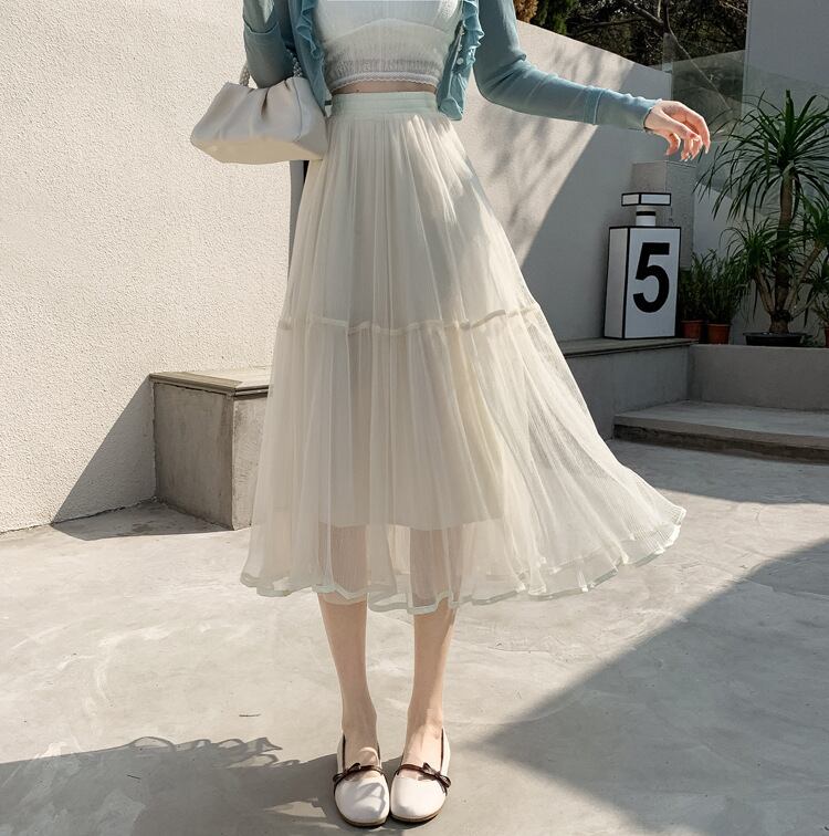 ギャザーリンクルスカートのティアードデザインが、上品で可愛らしい印象を与えます