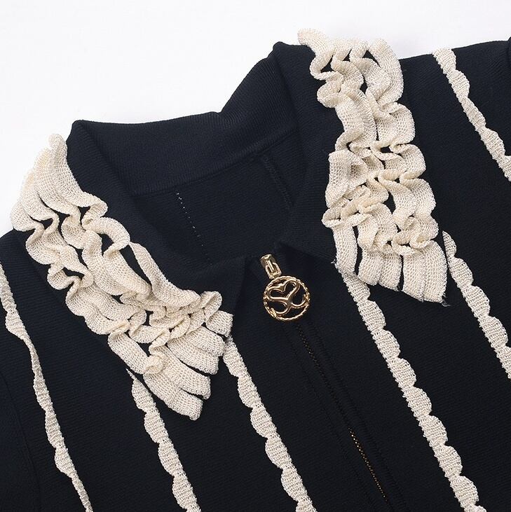 【送料無料】 ミドルワンピース レースライン ストライプレース 韓国 レディース オルチャン 黒 ブラック ホワイトライン フレアワンピース ショート丈 半袖 フリル袖 Vネック 襟付き フレア かぎ針編み ジップアップ 刺繍 フリル ファスナー ハイウエスト かわいい 大人可愛い 上品 おしゃれ かっこいい こなれ感 ラブリー キュート 個性的 存在感 抜け感 フェミニン 夏 休日 パーティー イベント 旅行 デート モテ 定番 トレンド 流行 インスタ映え S M L