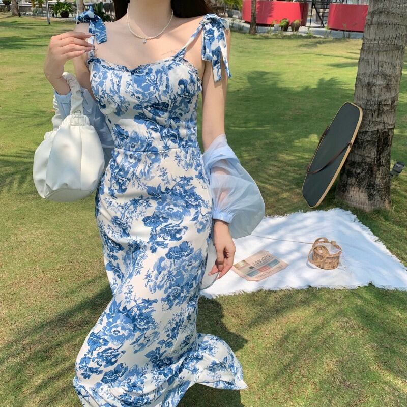 【送料無料】 ワンピース マキシワンピース キャミソール 花柄 Aライン 背中開き 韓国 レディース オルチャン かわいい 可愛い 谷間が見える ロング キュート 青 白 ブルー ホワイト 大人可愛い ミモレ丈 大人女子 透け感 ルーズ シンプル きれいめ カジュアル 大人 おしゃれ お洒落 スリム セクシー こなれ感 大人女子 フェミニン L XL 2XL 春 夏 10代 20代 30代 リゾート 海 女子会 デート お泊まり 旅行 コーデ トレンド 美脚 脚長 肩ひも