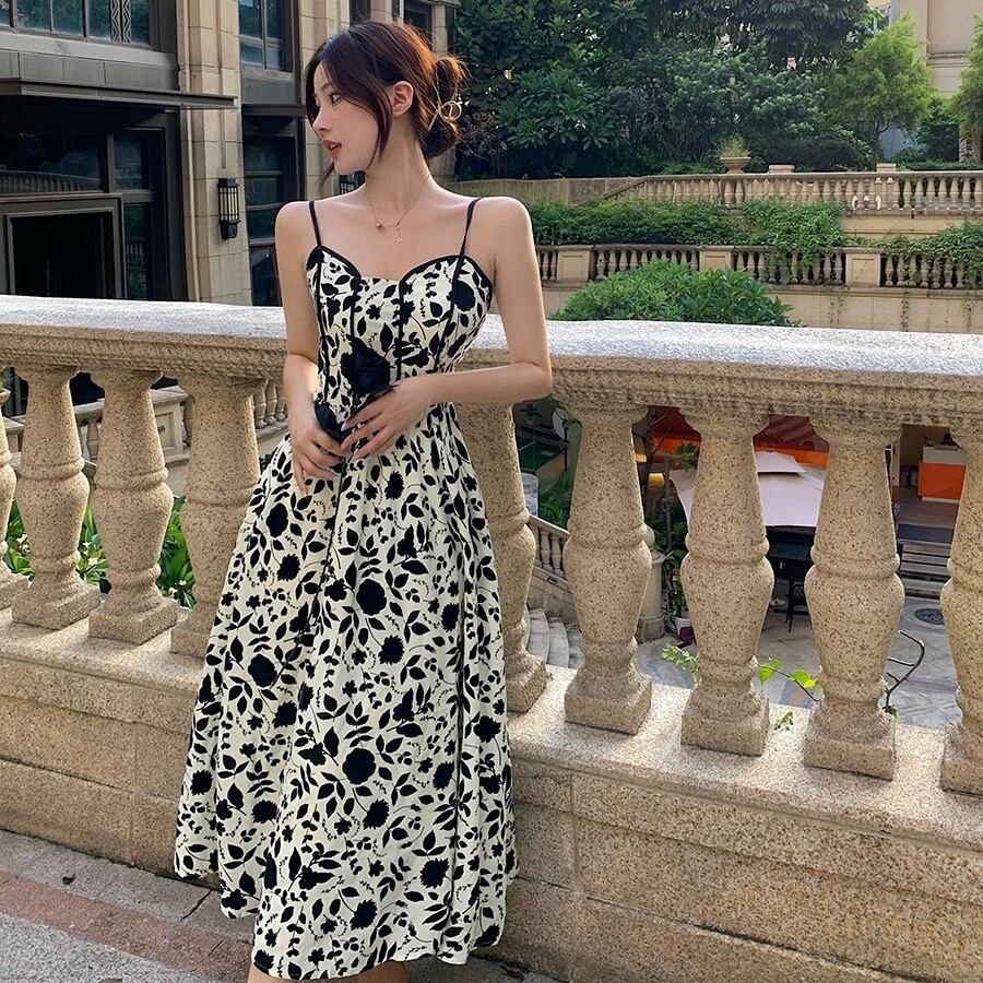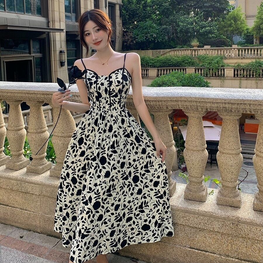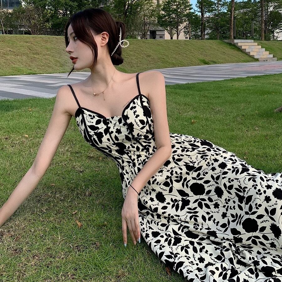 【送料無料】 ワンピース マキシワンピース 花柄 Aライン 背中開き 韓国 レディース オルチャン バラ 薔薇 かわいい 可愛い 谷間が見える ロング キュート 黒 白 ブラック ホワイト キャミソール 大人可愛い ミモレ丈 大人女子 透け感 ルーズ シンプル きれいめ カジュアル 大人 おしゃれ お洒落 セクシー こなれ感 大人女子 フェミニン L XL 2XL 夏 春 10代 20代 30代 リゾート 海 女子会 デート お泊まり 旅行 トレンド 美脚 脚長 肩ひも