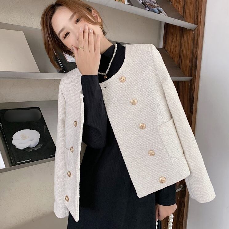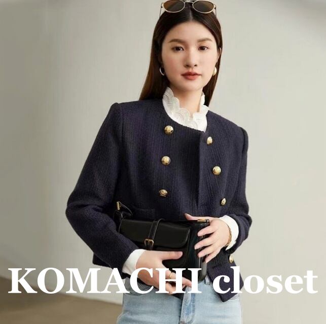 【送料無料】 ツイードジャケット ゴールドボタン 黒 ブラック 白 ホワイト ブルー 青 韓国 レディース オルチャン ノーカラージャケット ショート丈 長袖 Uネック ポケット かわいい 大人可愛い きれいめ 上品 おしゃれ かっこいい こなれ感 ラブリー キュート エレガント モダン フォーマル 抜け感 フェミニン ベーシック オトナ女子 高見え 春 秋 入学式 入園式 卒業式 卒園式 ママ 休日 イベント 着回し 重ね着 レイヤード トレンド 流行 インスタ映え M L