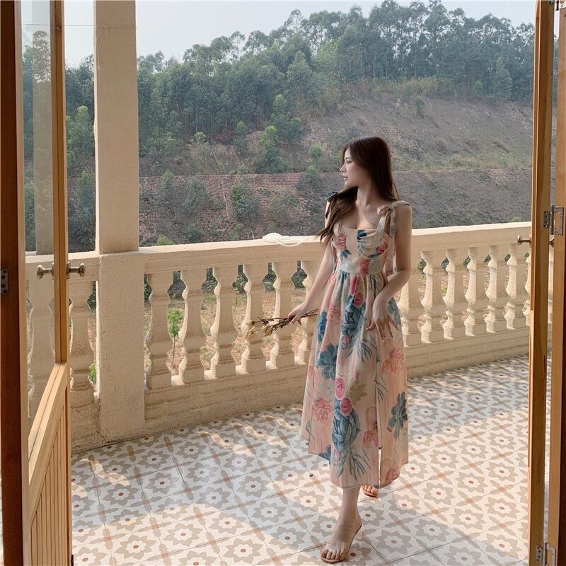 【送料無料】 ワンピース マキシワンピース キャミソール 花柄 Aライン 背中開き 韓国 レディース オルチャン リボン かわいい 可愛い 谷間が見える ロング スリット 青 ピンク ブルー 大人可愛い ミモレ丈 大人女子 透け感 ルーズ シンプル きれいめ カジュアル 大人 おしゃれ お洒落 スリム セクシー こなれ感 大人女子 フェミニン L XL 2XL 春 夏 10代 20代 30代 リゾート 海 女子会 デート お泊まり 旅行 プリンセス コーデ トレンド 美脚 脚長 肩ひも