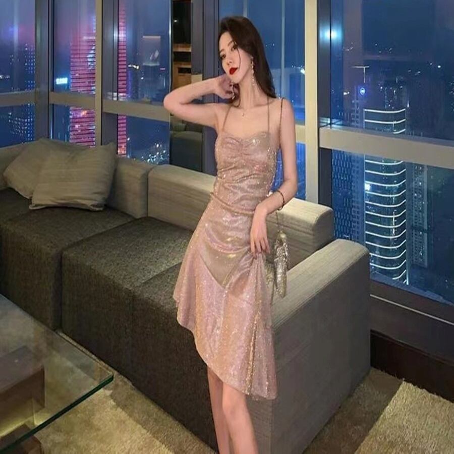 【送料無料】 ドレス パーティードレス フィッシュテール 膝下ワンピース 韓国 レディース オルチャン アシンメトリー キャミソールワンピース 谷間魅せ ロング丈 キャバ嬢 オフショルダー ラメ キャバドレス ハイウエスト スリム 細身 ゴールド かわいい 可愛い 大人可愛い 大人女子 クラブ 胸元 シンプル 薄手 きれいめ 大人 おしゃれ お洒落 こなれ感 大人女子 セクシー クール エレガント S M L XL 春 夏 秋 冬 20代 30代 40代 お呼ばれ パーティー 結婚式 二次会 美脚