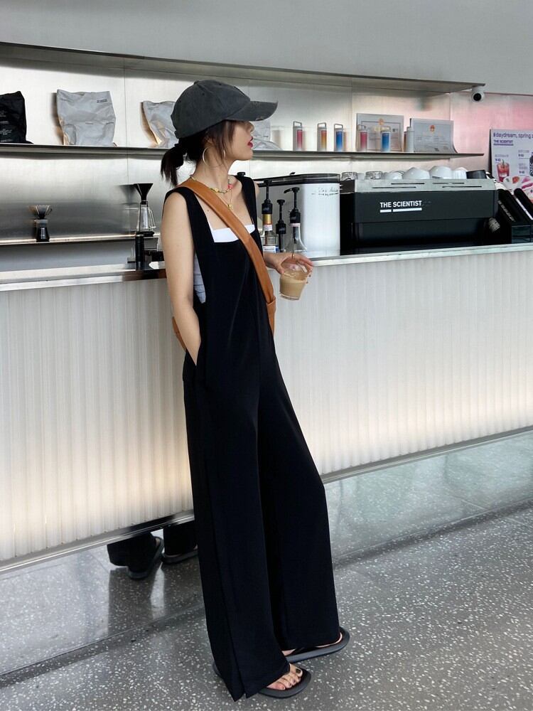 【送料無料】 オールインワン ジャンプスーツ オーバーオール ノースリーブ ワイドレッグパンツ ハイウエスト ルーズ 韓国 レディース かわいい 可愛い キュート 大人可愛い 大人女子 シンプル きれいめ カジュアル 大人 気品 上品 おしゃれ お洒落 こなれ感 きちんと 大人女子 クール エレガント フェミニン S M L ブラック 夏 オルチャン 10代 20代 30代 女子会 デート ショッピング お泊まり 休日 旅行 普段使い コーデ トレンド 脚長 美脚 スタイル 楽チン