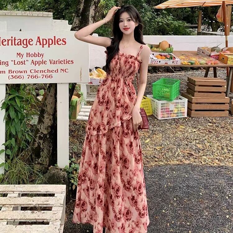 【送料無料】 ワンピース マキシワンピース キャミソール 花柄 Aライン 背中開き 韓国 レディース オルチャン アシンメトリー かわいい 可愛い ロング フラワー 黒 赤 ブラック レッド ベージュ 大人可愛い 大人女子 透け感 シンプル きれいめ カジュアル 大人 おしゃれ フリル お洒落 セクシー こなれ感 ハイウエスト 大人女子 フェミニン L XL 2XL 春 夏 10代 20代 30代 リゾート 海 女子会 デート 旅行 コーデ 谷間が見える トレンド 美脚 脚長 肩ひも 休日