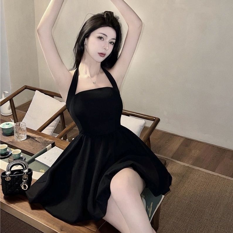 【送料無料】 ミニドレス 黒 Aライン ホルターネック パーティードレス ミニスカート ブラック ミニワンピース 韓国 レディース オルチャン 谷間魅せ キャバ嬢 黒 キャバドレス 結婚式 二次会 美脚 ハイウエスト スリム 細身 かわいい 可愛い 大人可愛い 大人女子 クラブ 背中開き 胸元 フリル ナイトドレス きれいめ 大人 おしゃれ お洒落 こなれ感 大人女子 セクシー クール エレガント L XL 春 夏 秋 冬 20代 30代 40代 パーティー 無地 モテ インスタ映え