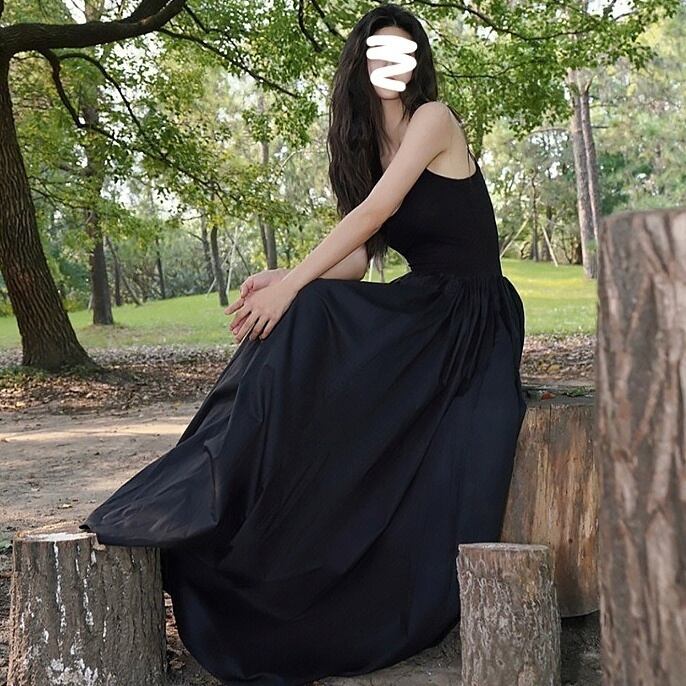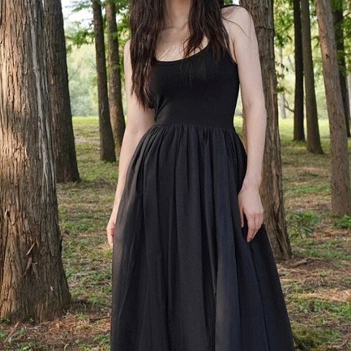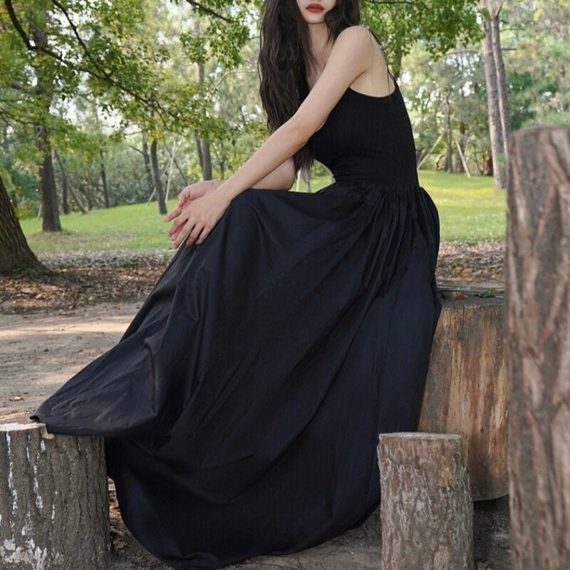 【送料無料】 ワンピース ロング丈 長袖 黒 Aライン プリンセス 韓国 レディース オルチャン かわいい 袖なし キャミソールワンピース ラウンドネック ロング ドレス 個性的 谷間が見える シンプル 高級感 ブラック 大人 無地 サマードレス ハイウエスト お洒落 大人可愛い 大人女子 こなれ感 ラフ ルーズ M XL L 二次会 存在感 抜け感 10代 20代 30代 40代 デート 女子会 休日 イベント 着回し 普段使い 重ね着 コーデ インナースカート