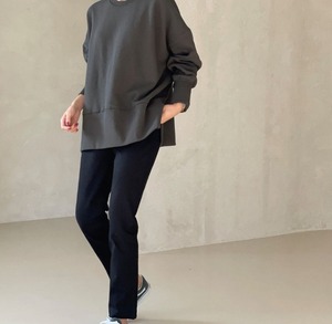 着心地抜群のルーズな長袖トレーナー。シンプルな無地なので、様々なスタイリングに合わせやすく、一枚持っていると重宝すること間違いなし!