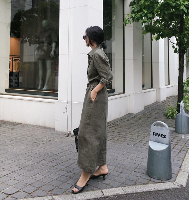 フェミニンでありながら、クールな雰囲気も漂うシャツワンピースです。