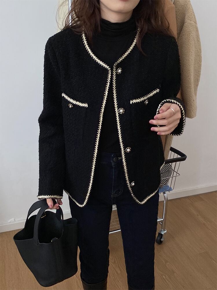【送料無料】 ツイードジャケット ジャケット オルチャン モノトーン 黒 白 アウター 韓国 レディース ブラック ホワイト 配色ライン デート ジャケット 長袖 ラウンドネック 襟なし Iライン ポケット ボタン デザイン かわいい 大人可愛い きれいめ 大人 上品 おしゃれ かっこいい レトロ 大人女子 こなれ感 個性的 クール エレガント モダン 主役級 存在感 フォーマル 抜け感 誕生日 入学式 入園式 卒業式 卒園式 謝恩会 二次会 母の日 女性用 ママ ビジネス OL 通勤 デート