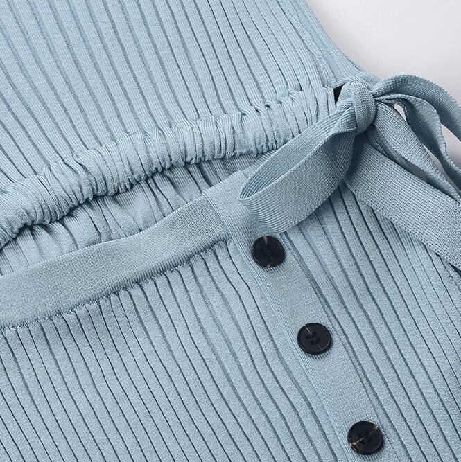 【送料無料】 リブニットワンピース ウエストカットアウト 黒 ブラック 水色 ブルー 韓国 レディース オルチャン 膝下 ミモレ丈 長袖 Uネック ラウンドネック スリム タイト 細身 スマート ウエストマーク ウエストリボン サイドスリット ハイウエスト 伸縮性 ボタン かわいい 大人可愛い きれいめ おしゃれ かっこいい こなれ感 キュート 個性的 クール モード系 セクシー モダン 抜け感 無地 秋 冬 休日 イベント デート トレンド 流行 インスタ映え S M L