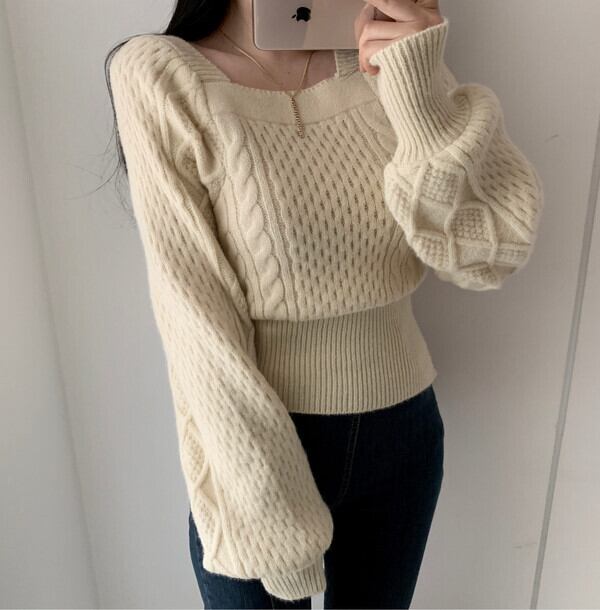 【送料無料】 セーター プルオーバー 長袖 ショート丈 マトンスリーブ スクエアネック ウエストマーク 韓国 レディース かわいい 大人可愛い きれいめ シンプル 上品 おしゃれ かっこいい レトロ こなれ感 個性的 主役級 存在感 抜け感 ワンサイズ カーキ ブラック 黒 ベージュ 冬 キュート ナチュラル ベーシック セクシー クール 無地 女性用 デート お泊まり イベント 女子会 休日 アウトドア カフェ ショッピング 旅行 レストラン コンパ レイヤード 重ね着 普段使い 着回し 暖かい
