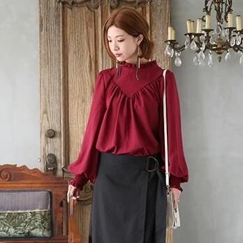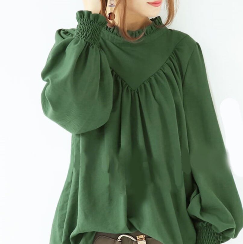 【送料無料】 フリルシャツ フリルブラウス プルオーバー ギャザー 韓国 レディース オルチャン 緑 グリーン 赤 レッド 白 ホワイト モカベージュ ブラウス ボリューム袖 フリル袖 フリルカラー ドレープ 薄手 かわいい 大人可愛い シンプル カジュアル おしゃれ かっこいい こなれ感 ラブリー キュート 抜け感 フェミニン ベーシック ナチュラル 大人女子 無地 春 秋 休日 カフェ デート 着回し 普段使い 重ね着 定番 トレンド 流行 インスタ映え S M L XL 2XL