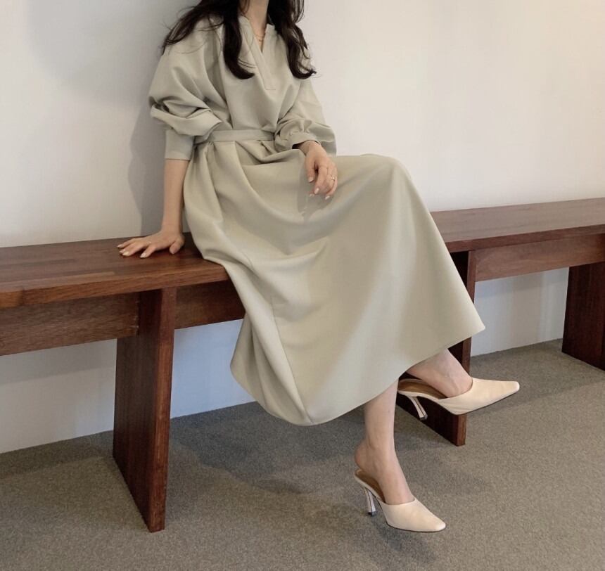 【送料無料】 ワンピース ロングワンピース Vネック ブルー ベージュ 韓国 レディース オルチャン フレア Aライン ロング丈 ハイウエスト スリム 細身 かわいい 可愛い ベルト オーバーサイズ ルーズカジュアル キュート 大人可愛い 大人女子 シンプル きれいめ 大人 上品 おしゃれ お洒落 こなれ感 ミモレ丈ワンピース きちんと 大人女子 クール エレガント フェミニン フリーサイズ 春 秋 夏 10代 20代 30代 デート 普段使い コーデ トレンド 美脚 脚長 インスタ映え