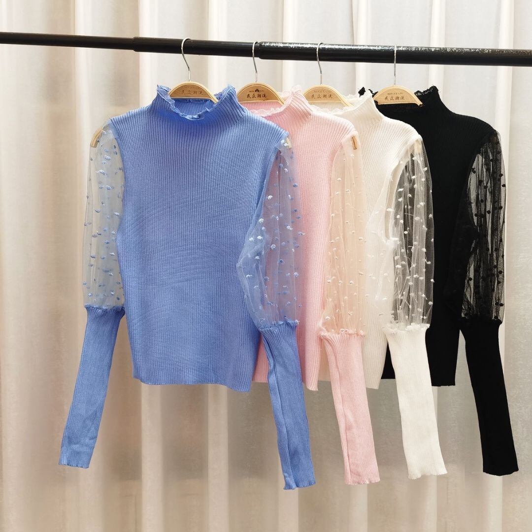 【送料無料】 ドット プルオーバー ニット シアールーススリーブ 黒 白 シースルー 韓国 レディース オルチャン パフスリーブ 透け感 かわいい 可愛い キュート 大人可愛い 大人女子 シンプル きれいめ カジュアル 大人 気品 上品 おしゃれ お洒落 こなれ感 セクシー クール エレガント フェミニン 10代 20代 30代 40代 女子会 デート ショッピング 普段使い デイリー トレンド スタイル 細見え スタイルアップ インスタ映え イベント パーティー 主役級 個性的