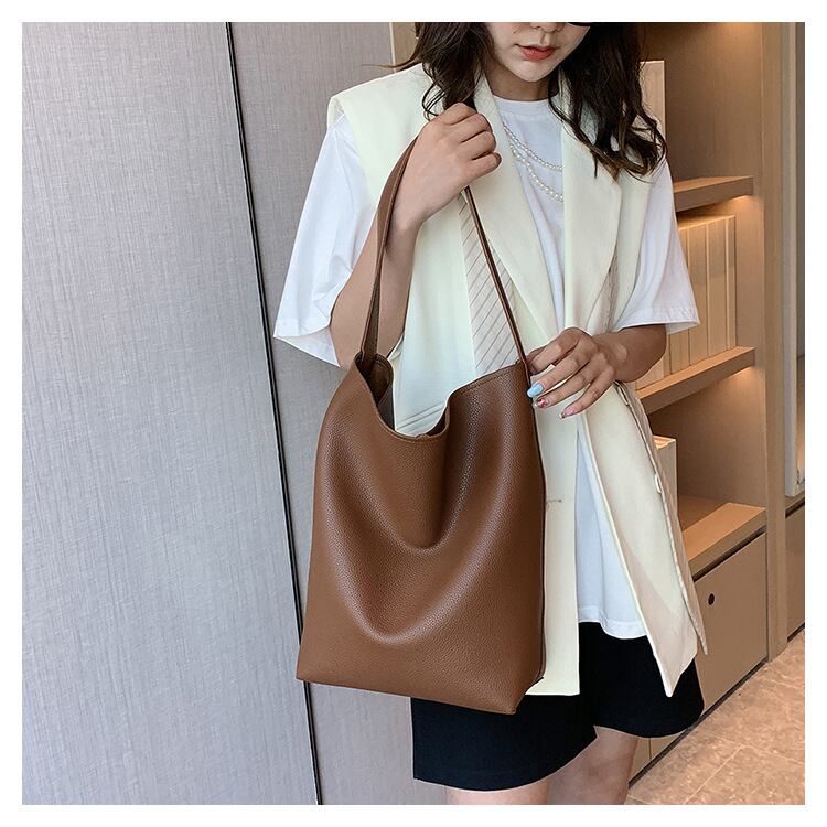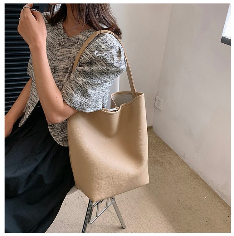 【送料無料】 ソフトレザーショルダーバッグ 通勤 トートバッグ 大容量 バケツバッグ 手持ちショルダー 韓国 レディース オルチャン黒 ブラック グレー 茶色 ブラウン ライトブラウン ベージュ ワンショルダー 男女兼用 ユニセックス ビジネス 通勤 通学 かっこいい クール 使いやすい 柔らかい デイリーユース 普段使い 旅行 カラバリ 大人カラー ギフト プレゼント 定番 流行 トレンド インスタ映え 大人可愛い 大人女子 オトナ女子 ナチュラル アクティブ マニッシュ メンズライク ラフ