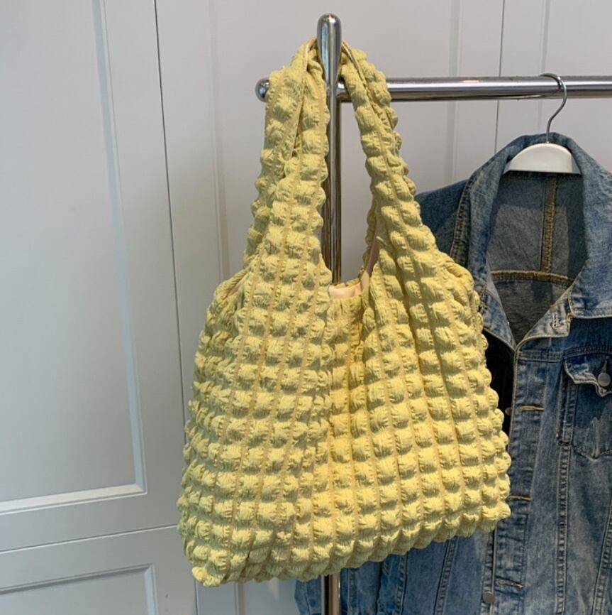【送料無料】 ワッフルトートバッグ ぽこぽこバッグ ポコポコバッグ バブル 韓国 レディース オルチャン ショルダーバッグ カジュアル トートバッグ 黒 ブラック 白 ホワイト 緑 グリーン 黄色 イエロー カラバリ かわいい 大人可愛い シンプル おしゃれ お洒落 かっこいい レトロ こなれ感 抜け感 かっこいい ママ マザーズ マタニティ デート 女子会 休日 ショッビング カフェ 旅行 お買い物 デイリー 普段使い プレゼント ギフト 定番 トレンド 流行 インスタ映え 大人カラー