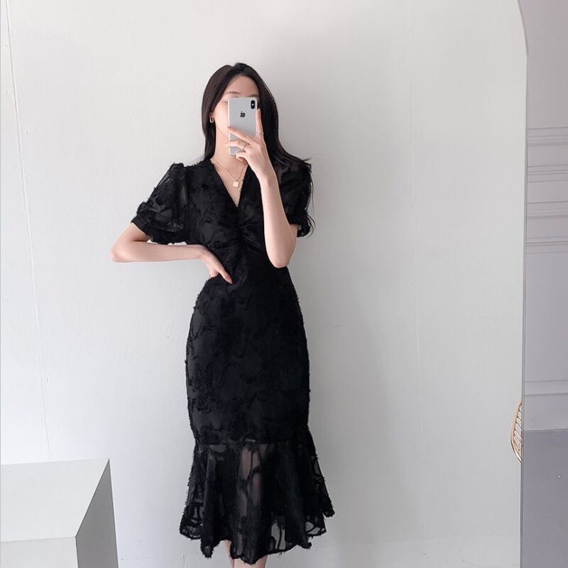 【送料無料】 パーティードレス レースワンピース マーメイド ミモレ丈 韓国 レディース オルチャン ドレス 半袖 Vネック レースワンピ かわいい 可愛い キュート 大人可愛い 大人女子 シンプル きれいめ カジュアル 大人 気品 上品 おしゃれ お洒落 こなれ感 きちんと セクシー クール エレガント フェミニン 10代 20代 30代 40代 女子会 デート ショッピング 普段使い デイリー トレンド スタイル 細見え スタイルアップ インスタ映え イベント 個性的 主役級 体型カバー