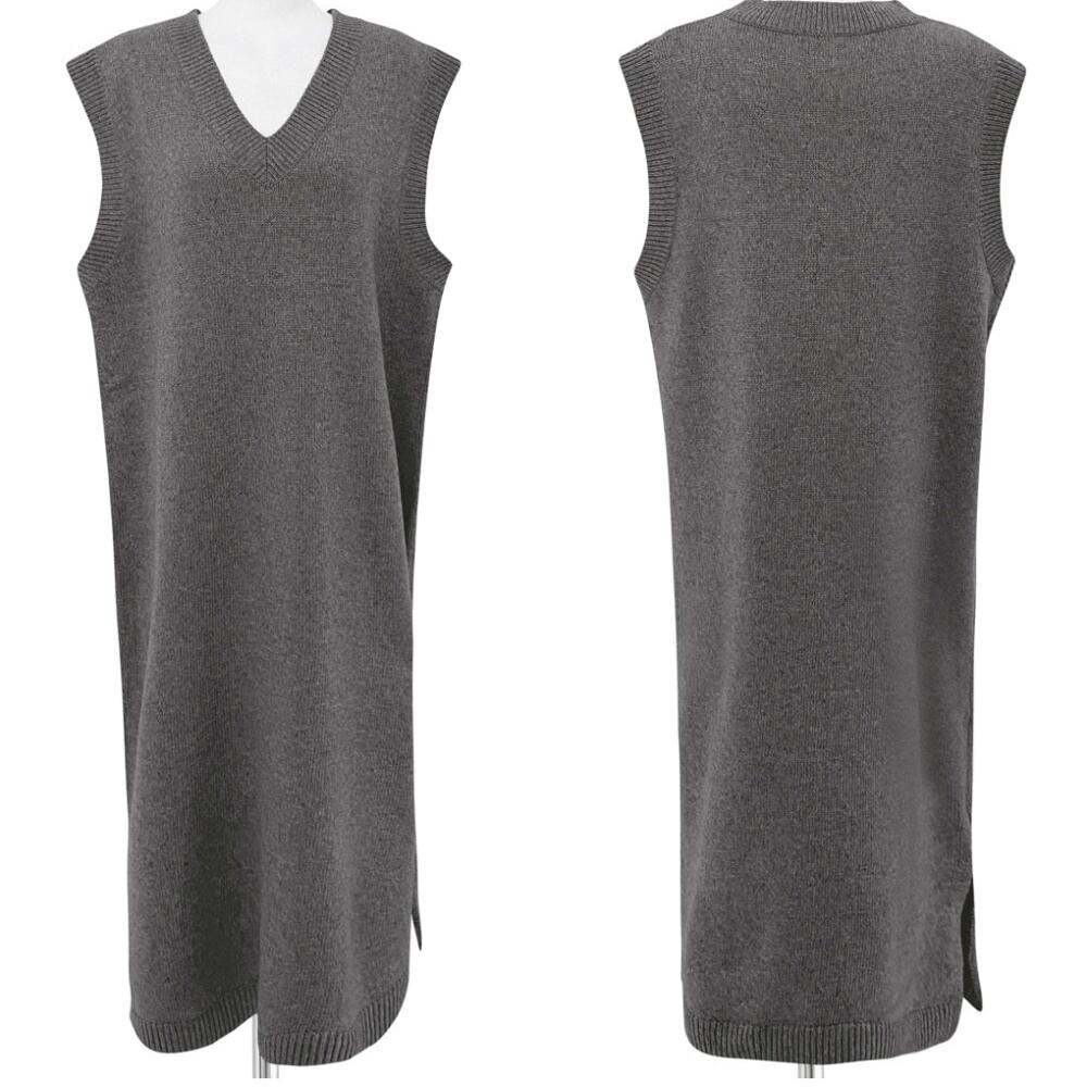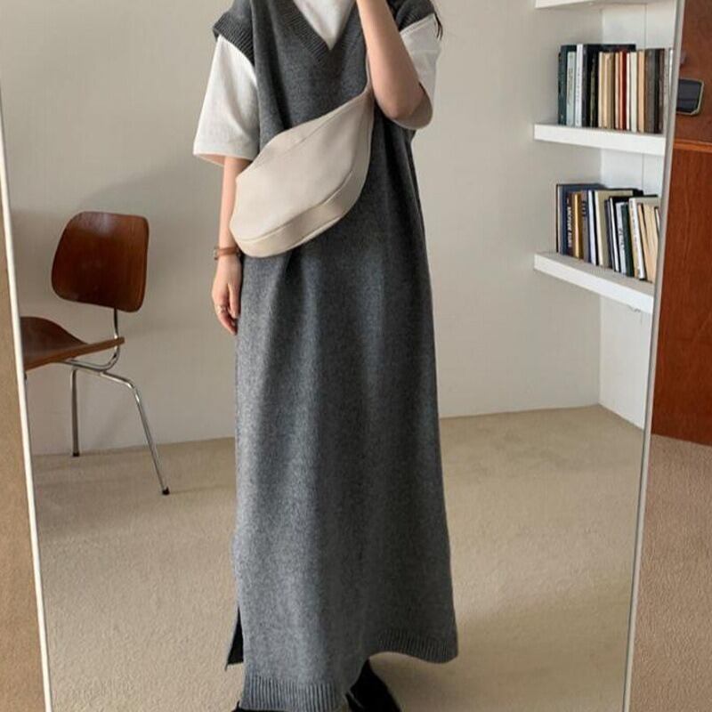 【送料無料】 ワンピースベスト ニットワンピース ベストワンピース 体系カバー ゆったり Vネック ニット カジュアル 韓国 レディース オルチャン ワンピース ニットソー セーター Iライン ストレート グレー 秋 冬 10代 20代 30代 40代 50代 60代 秋冬 かわいい 大人可愛い きれいめ シンプル 大人 上品 おしゃれ お洒落 大人可愛い 大人女子 こなれ感 存在感 抜け感 通学 デート 女子会 お泊まり 休日 旅行 着回し 普段使い 重ね着 暖かい OL 通勤 オフィス