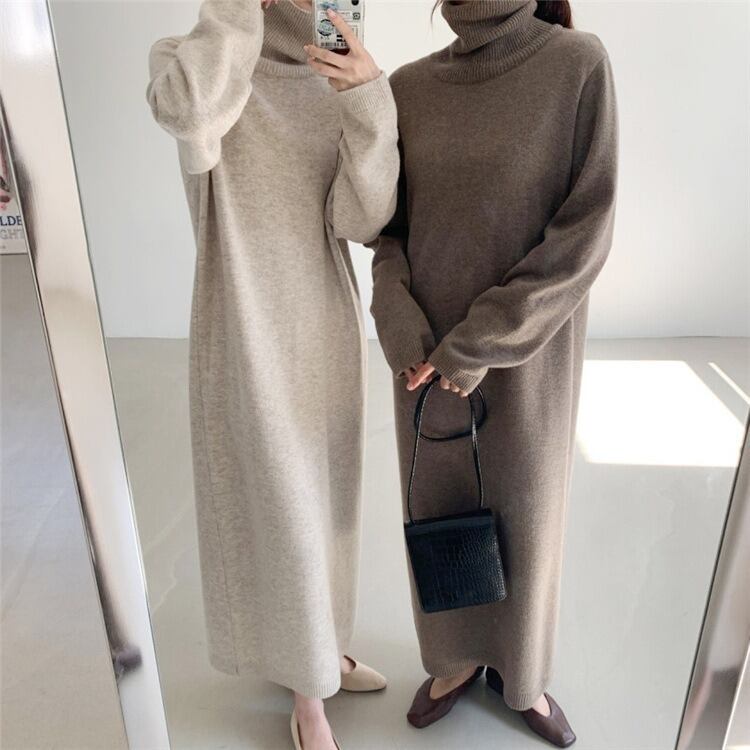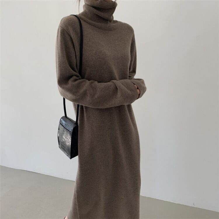 大人女子に大人気のタートルネックニットワンピースが登場しました。暖かくて柔らかな素材で、寒い季節にぴったりのアイテムです。マキシ丈のロングワンピースは、スタイリッシュでかつリラックス感のある着こなしを楽しめます。