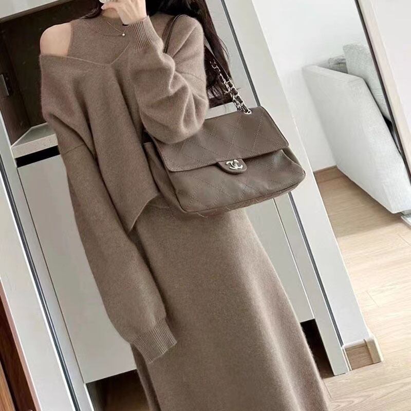 【送料無料】 ニットワンピース マキシ丈 ニット ロングワンピ 2点セット リブニット レディース 韓国 オルチャン 黒 トップス セットアップ ストレート Iライン ホワイト ベージュ セーター オフショル 長袖 スリム スマート ロングワンピース ゆったり かわいい 大人可愛い きれいめ シンプル カジュアル 大人 上品 おしゃれ かっこいい 大人女子 こなれ感 キュート 個性的 クール エレガント 抜け感 デート 女子会 休日 着回し 普段使い コーデ スタイル 楽ちん 暖かい モテ
