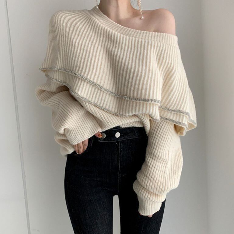 【送料無料】 フリルニット セーター リブニット ケープ調 着やせ 長袖 オフショルダー 楽ちん 黒 オフホワイト 韓国 レディース オルチャン 黒 着回し 春夏 ラウンドネック フリル 2段 オフショル ワンショルダー 二の腕カバー ワイド 20代 30代 40代 春 冬 秋 厚手 普段使い オフィス ママ リゾート パフスリーブ バルーン ワイド 重ね着 動きやすい パール 休日 ホワイト フリーサイズ かわいい カジュアル シンプル こなれ感 セクシー 女性用 ブラック 大人可愛い
