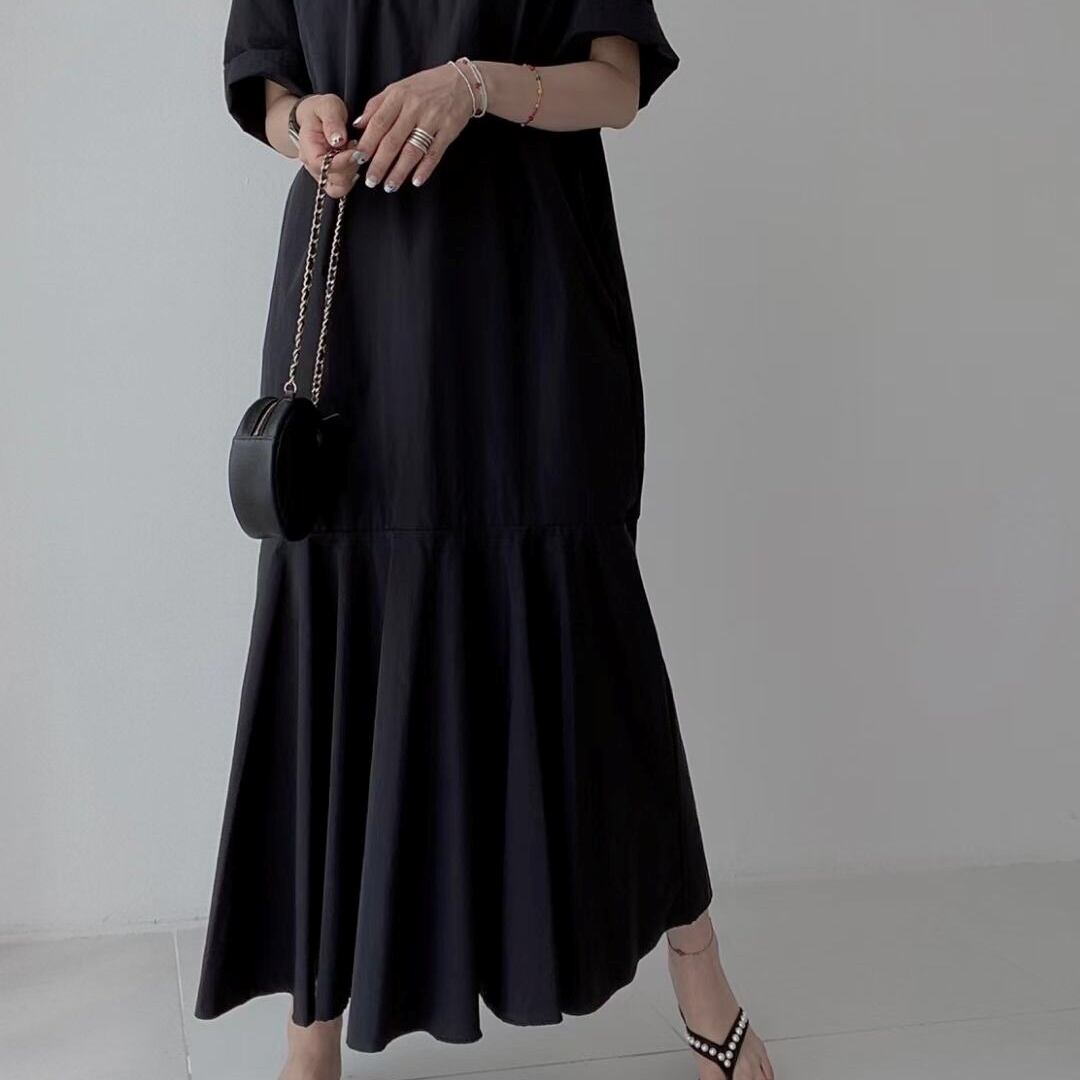 【送料無料】 Tシャツワンピ ロングワンピース ティアード バックコンシャス マキシ丈 フィッシュテール 韓国 レディース オルチャン ゆったり フレア Aライン ロング丈 半袖 黒 ライトブルー ベージュ かわいい 可愛い オーバーサイズ ルーズ カジュアル キュート 大人可愛い 大人女子 シンプル きれいめ 大人 上品 おしゃれ お洒落 こなれ感 マキシワンピース 大人女子 クール フェミニン フリーサイズ 春 夏 10代 20代 30代 40代 50代 デート 普段使い コーデ インスタ映え
