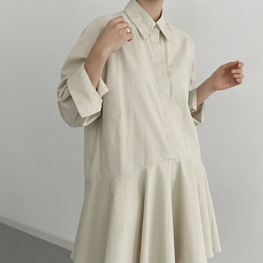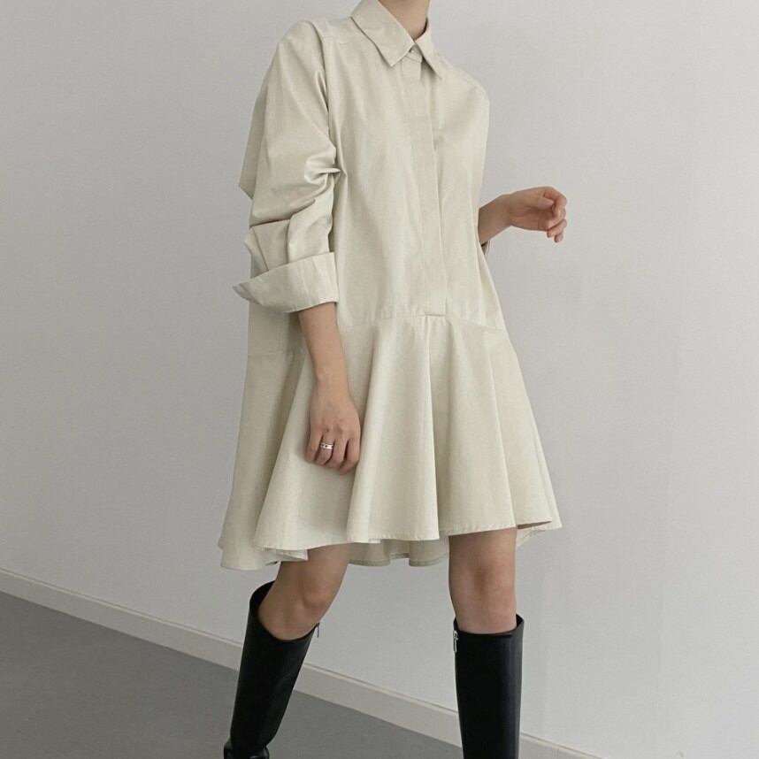 こちらのシャツワンピースはオフホワイトやブラックなど、上品なカラーバリエーションが魅力。一枚でさらっと着るだけで、トレンド感と女性らしい魅力を演出してくれます。美脚効果も期待できる膝上丈で、大人の女性にもおすすめのアイテムとなっています。