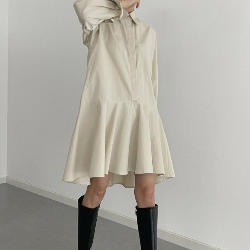 【送料無料】 ミニワンピース フィッシュテール 膝上丈 ワンピース シャツワンピース 黒 オフホワイト 韓国 レディース オルチャン 襟あり 膝上スカート 可愛い かわいい 大人可愛い シンプル マーメイド カジュアル 大人 おしゃれ お洒落 タイト 細身 大人女子 こなれ感 キュート 個性的 クール 存在感 抜け感 ブラック 黒 オールシーズン 10代 20代 30代 女性用 OL 通勤 通学 デート 女子会 お泊まり 休日 イベント 旅行 普段使い 重ね着 美脚 脚長