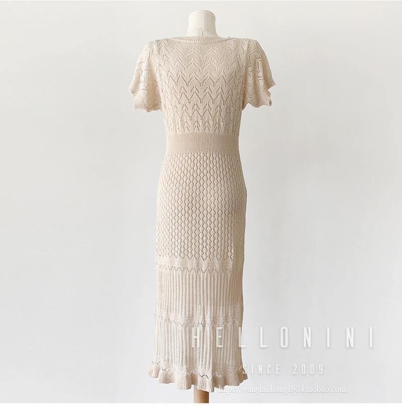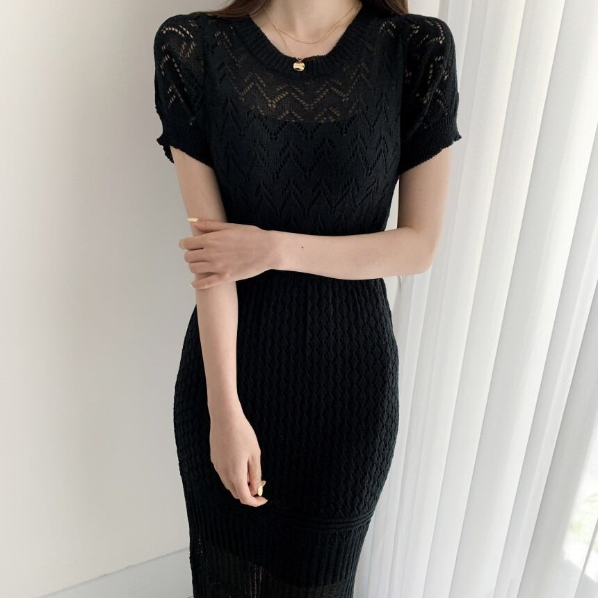 【送料無料】 ニットワンピース ロングワンピース 夏 半袖 サマーニット 韓国 レディース オルチャン かわいい キュート ベージュ 黒 ブラック ミモレ丈 伸縮性 ウエスタン ロング丈 大人可愛い ミモレ丈ワンピ 大人女子 シンプル きれいめ カジュアル 透かし編み 透け感 大人 気品 上品 お洒落 涼しい こなれ感 きちんと セクシー クール エレガント フェミニン 10代 20代 30代 女子会 デート 普段使い デイリー トレンド スタイル 細見え スタイルアップ インスタ映え 個性的