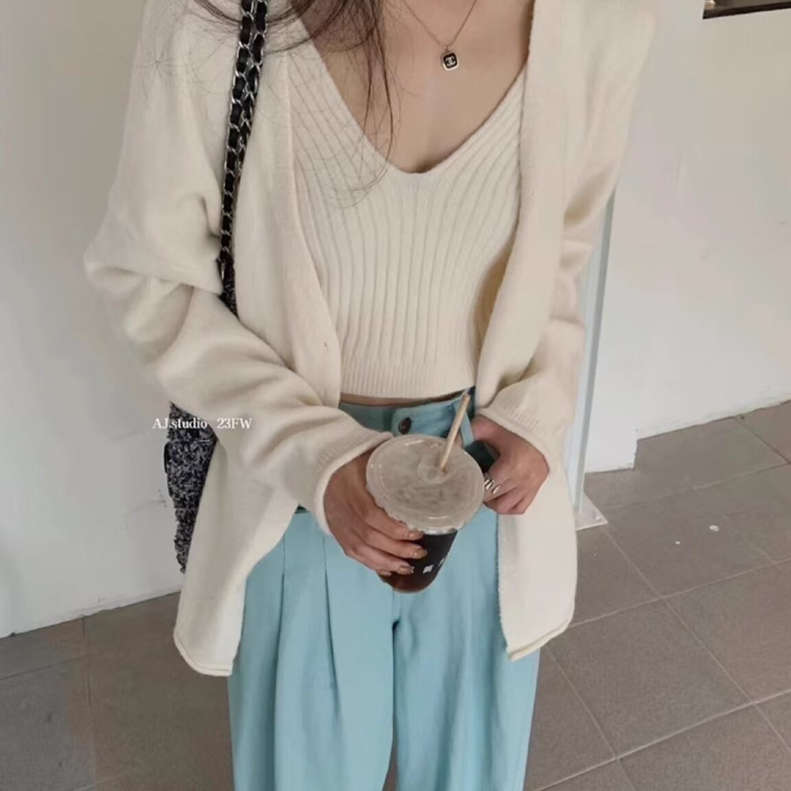 お得な2点セットのカーディガンとキャミソール。ピンク、白、黒、グレーなど豊富なカラーバリエーションで、お好みに合わせてお選びいただけます。Vネックのキャミソールは、さりげなく肌を見せるデザインが女性らしさを引き立てます。