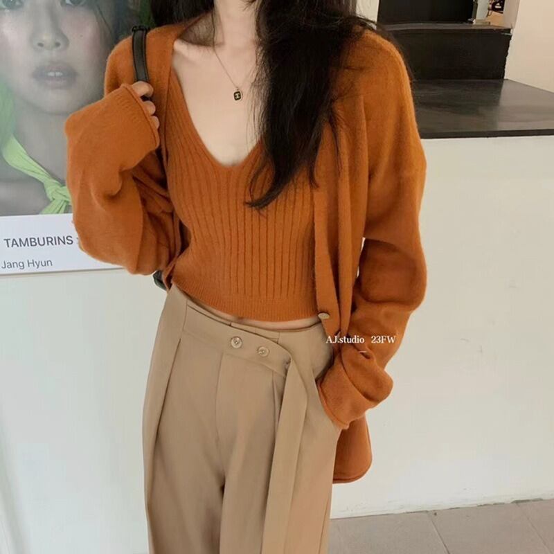 【送料無料】 カーディガン キャミソール ニットカーディガン 2点セット ピンク 白 韓国 レディース オルチャン トップス 黒 グレー セットアップ ホワイト ブラック 緑 オレンジ ニットソー 袖なし 袖あり 長袖 Vネック 無地 春 秋 冬 10代 20代 30代 40代 オフィス ビジネス OL 通勤 かわいい 大人可愛い きれいめ シンプル 大人 おしゃれ お洒落 大人可愛い 大人女子 こなれ感 キュート 抜け感 通学 デート 女子会 お泊まり 休日 着回し 普段使い 重ね着