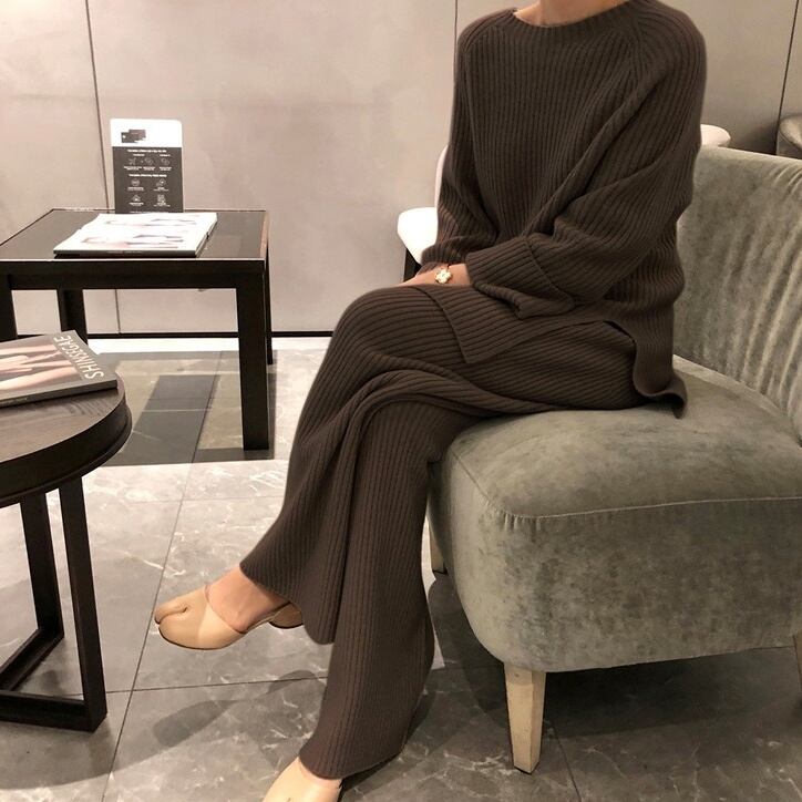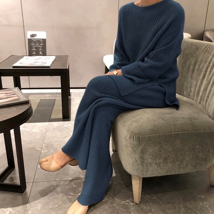 【送料無料】 ニットセットアップ パンツセットアップ 上下セット 2点セット 黒 ウエストゴム 韓国 レディース オルチャン ツーピース ブラック 茶色 青 グレー ブラウン 白 オフホワイト ロング丈 ニットパンツ ニット2点セット 細身 ラウンドネック Uネック 女子会 可愛い 大人可愛い きれいめ 襟なし 部屋着 大人 オトナ女子 秋冬 秋 冬 春 暖かい フリーサイズ 大人カラー 食事会 10代 20代 30代 40代 デート 着回し 着痩せ モテ こなれ感 抜け感 ラフ 定番