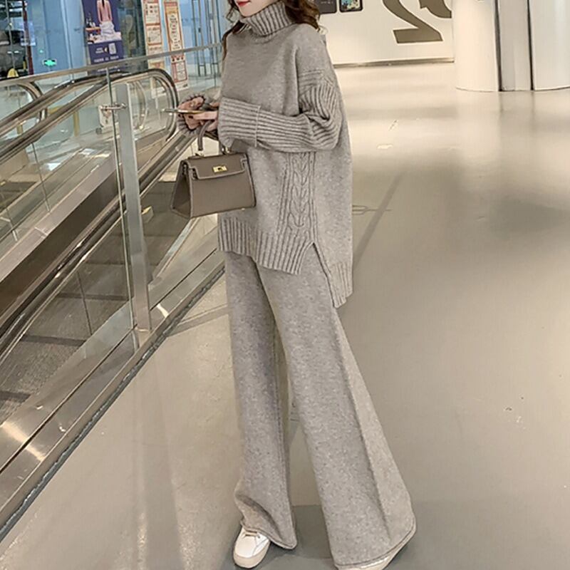 お洒落なコーディネートを手軽に楽しむことができる、ニットワイドパンツと長袖セットの登場です。上品なタートルネックトップスと、大人っぽいリブニットパンツの2点セットは、1着でおしゃれ感たっぷりのコーデが完成します。