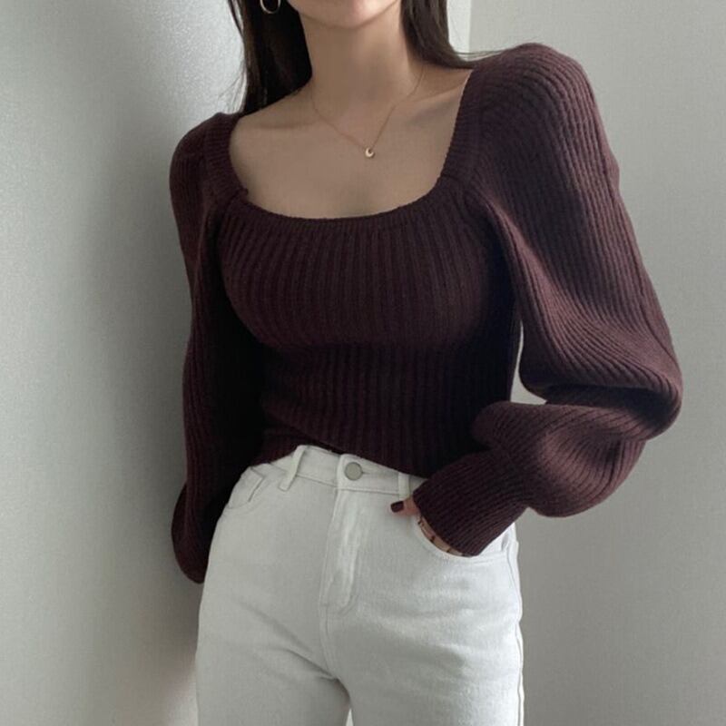 【送料無料】 パフスリーブニット セーター 萌え袖 ぽわん袖 スクエアネック 谷間魅せ セクシー 黒 韓国 レディース オルチャン ブラック 着回し グレー ピンク 茶色 ブラウン 袖リブ 秋冬 谷間が見える 着やせ 二の腕カバー ワイド 10代 20代 30代 40代 春 冬 秋 厚手 普段使い オフィス キュート おしゃれ ママ バルーン ワイド 重ね着 動きやすい 無地 休日 フリーサイズ かわいい カジュアル シンプル こなれ感 セクシー 女性用 ブラック 大人可愛い ゆる