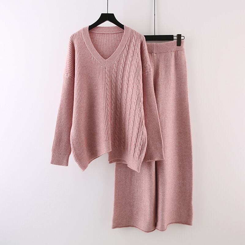 【送料無料】 ニットセットアップ ニットパンツセットアップ ケーブルニット 上下セット ツーピース 2点セット ワイドパンツ 韓国 レディース オルチャン 春 秋冬 秋 冬 黒 白 ケーブル編み ブラック ホワイト 黄色 イエロー ピンク Vネック ルームウェア 寝巻 かわいい きれいめ シンプル ゆったり お洒落 大人可愛い 大人女子 こなれ感 キュート 主役級 存在感 抜け感 デート 女子会 お泊まり 休日 旅行 着回し 普段使い 重ね着 モテ トレンド