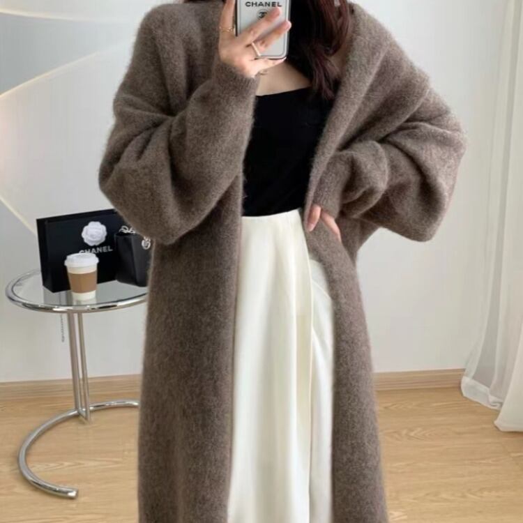 暖かくてスタイリッシュなロング丈ニットカーディガンが新登場!寒い季節にぴったりのアイテムで、襟がないデザインなので、スッキリとしていて着やせ効果も◎。さらに、二の腕をカバーできるので、体型を気にせずおしゃれを楽しむことができます。