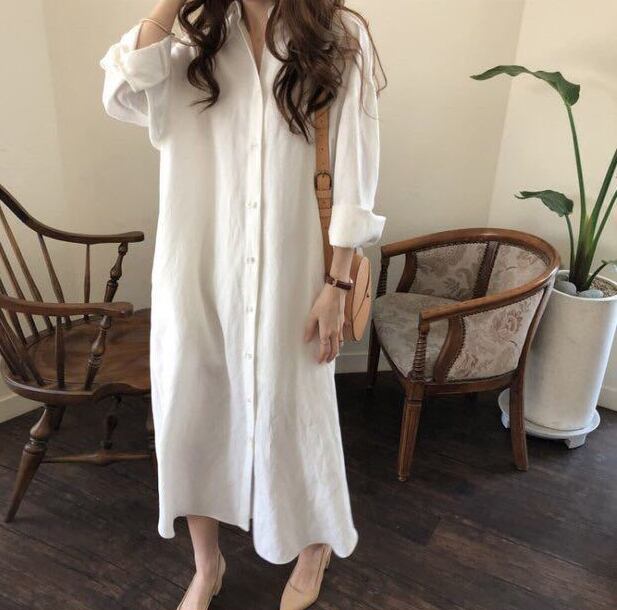 【送料無料】 シャツワンピース シャツ ワンピース ホワイト ブルー 韓国 レディース オルチャン トップス ロング ロング丈 袖あり 長袖 襟付き 無地 春 秋 10代 20代 30代 40代 韓国系 S M L かわいい 大人可愛い きれいめ シンプル 大人 上品 おしゃれ お洒落 大人可愛い 大人女子 こなれ感 キュート 主役級 存在感 抜け感 通学 デート 女子会 お泊まり 休日 旅行 着回し 普段使い 重ね着 コーデ スタイル モテ トレンド 流行
