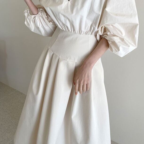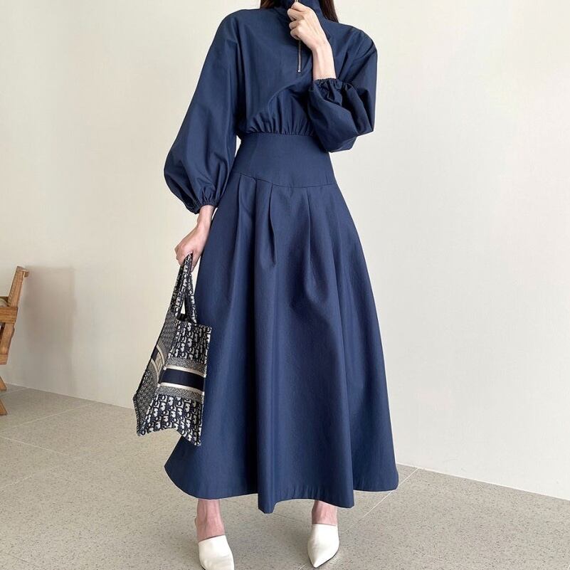 【送料無料】 ワンピース ロングワンピース ハイネック ネイビー ホワイト 韓国 レディース オルチャン フレア Aライン ロング丈 ハイウエスト かわいい ウエストマーク 切り替えデザイン オーバーサイズ カジュアル キュート 大人可愛い 大人女子 シンプル きれいめ 大人 上品 おしゃれ お洒落 こなれ感 ミモレ丈ワンピース きちんと 大人女子 クール エレガント フェミニン フリーサイズ 春 秋 夏 10代 20代 30代 40代 50代 デート 普段使い コーデ トレンド 美脚
