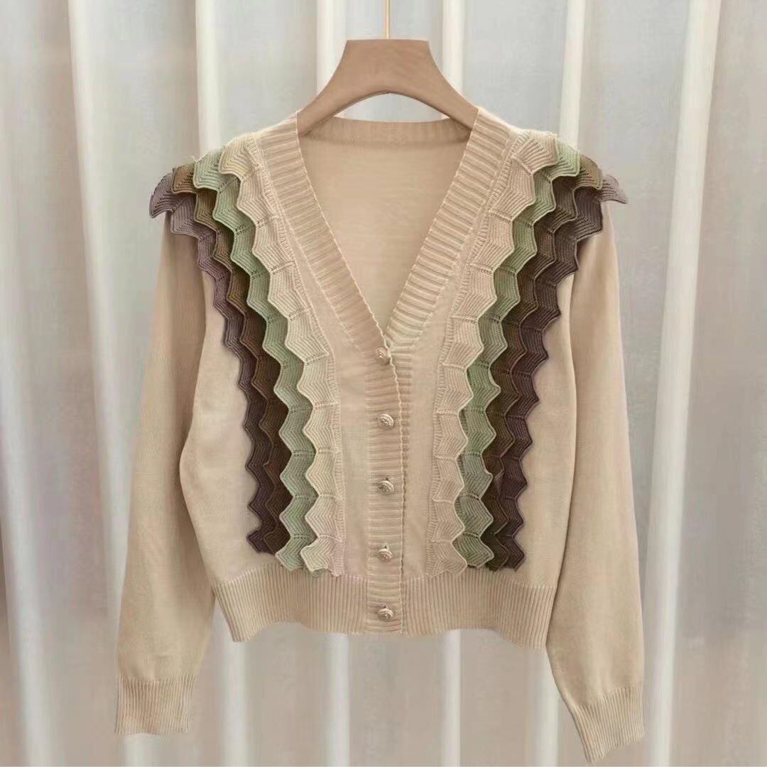 【送料無料】 ニットカーディガン フリル かわいい 個性的 春 韓国 レディース オルチャン 春カラートップス Vネック 長袖 可愛い 個性的 大人 かっこいい きれいめ 高級感 高見え おしゃれ 体型カバー お洒落 モテ 女っぽい 大人っぽい 上品 美人 エレガント ゴージャス オトナ女子 大人女子 インスタ映え 主役級 存在感 クール スタイルアップ デート 大人可愛い こなれ感 パーティー イベント カジュアル きちんと セクシー 20代 30代 40代 女子会 トレンド 細見え 普段使い 着回し