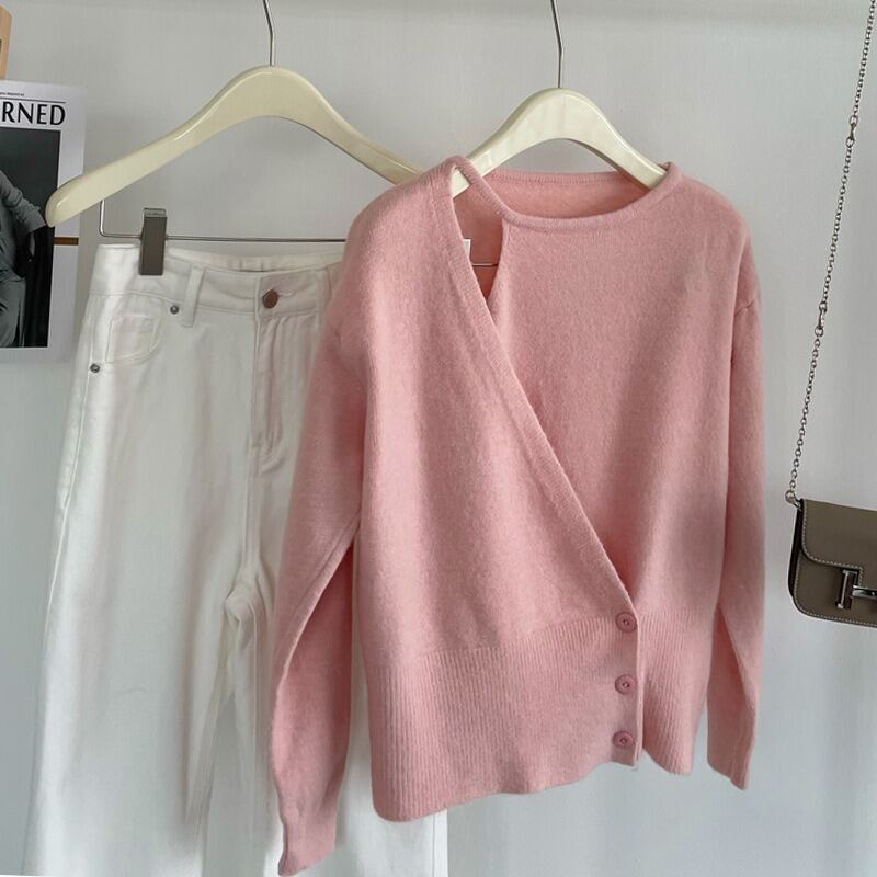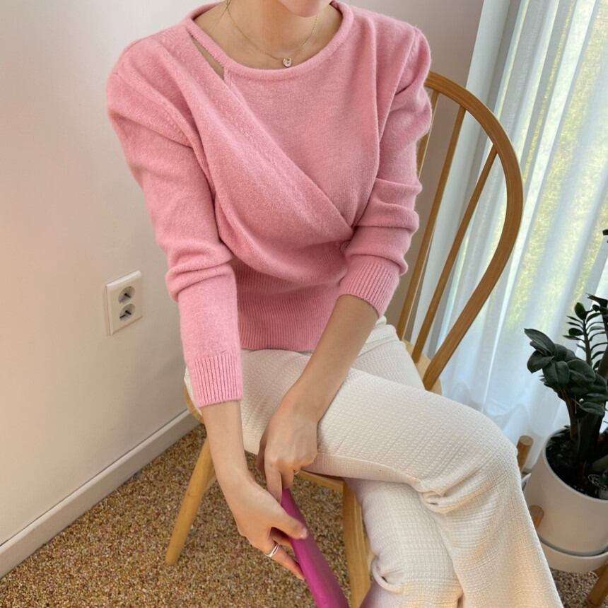 【送料無料】 ニット セーター アシンメトリー ラウンドネック 長袖 韓国 レディース オルチャン ピンク ホワイト 白 秋冬 Uネック 細身 セクシー 袖リブ 女子会 可愛い オフィス 大人可愛い きれいめ ショート丈 ワンショル 個性的 デザイン性 大人 オトナ女子 秋 冬 夏 春 暖かい フリーサイズ 長袖ニット 大人カラー 10代 20代 30代 40代 50代 OL 通学 デート 着回し 着痩せ 二の腕カバー スタイルアップ モテ こなれ感 抜け感 ラフ 定番