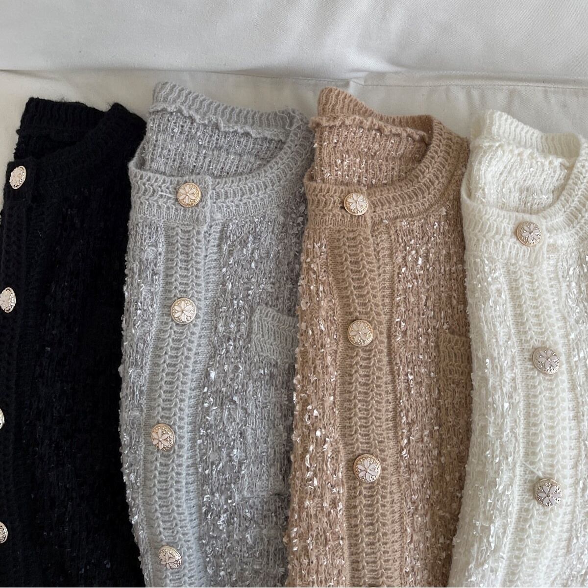 【送料無料】 カーディガン ニットカーディガン ジャケット ショート丈 長袖 韓国 レディース オルチャン 白 黒 ホワイト セーター ブラック グレー ベージュ ピンク 可愛い 金ボタン 個性的 きれいめ 高級感 高見え おしゃれ 体型カバー お洒落 モテ 女っぽい 大人っぽい 上品 美人 エレガント ゴージャス オトナ女子 主役級 存在感 デート シンプル 大人可愛い お出掛け こなれ感 パーティー きちんと セクシー 20代 30代 40代 50代 女子会 トレンド 細見え オフィス