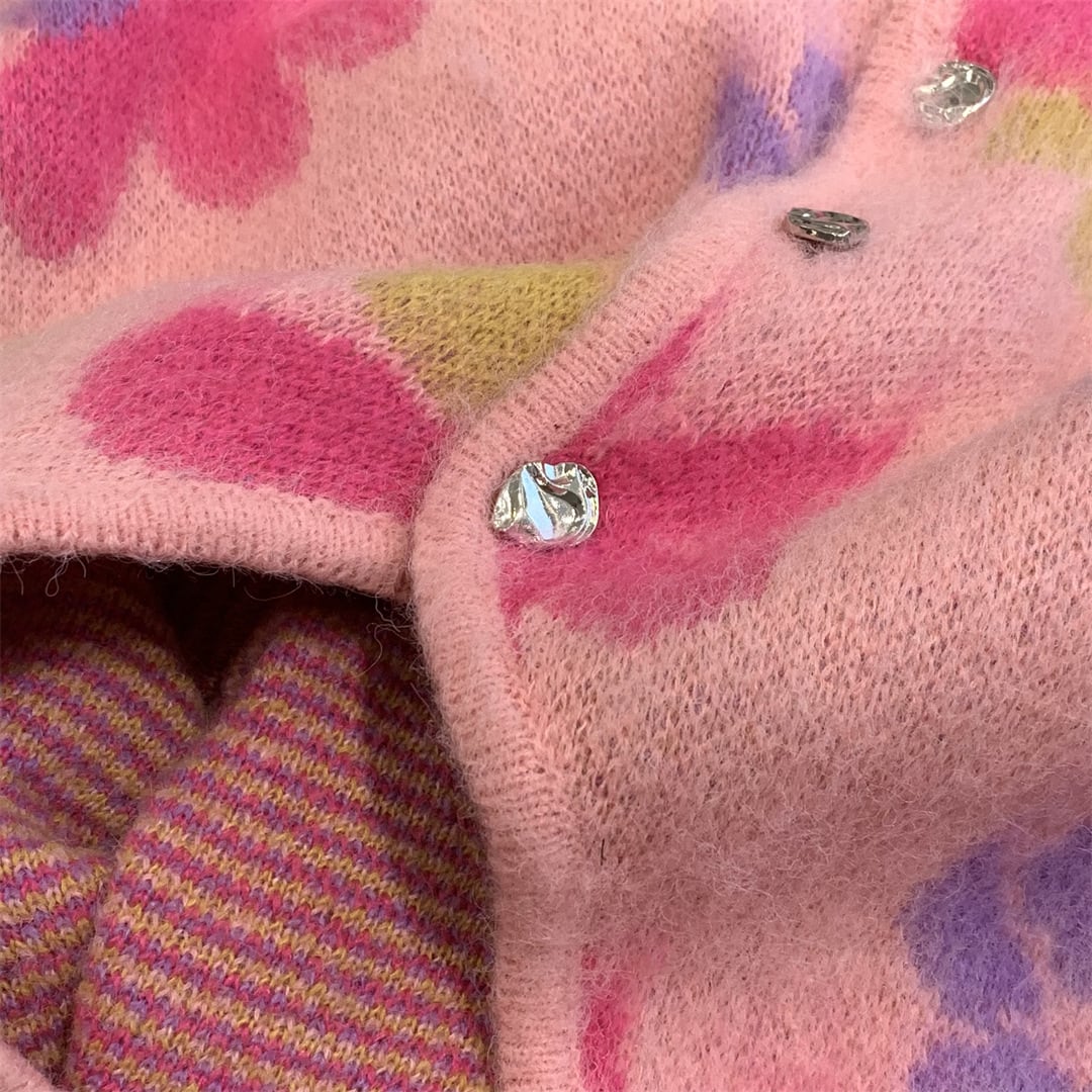 【送料無料】 花柄カーディガン カーディガン 花柄 オーバーサイズ ざっくりニット ピンク 韓国 レディース オルチャン トップス アウター Vネック 秋 冬 10代 20代 30代 40代 韓国系 楽ちん 暖かい 防寒 S M L かわいい 大人可愛い きれいめ 大人 上品 おしゃれ お洒落 大人可愛い 大人女子 こなれ感 キュート 主役級 存在感 抜け感 通学 デート 女子会 お泊まり 休日 旅行 着回し 普段使い 重ね着 コーデ スタイル モテ トレンド 流行 インスタ映え ポップ