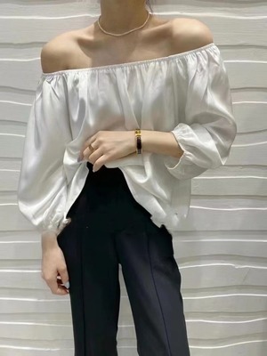 【送料無料】 サテンブラウス オフショルダーブラウス オフショルダーカットソー 2way 韓国 レディース オルチャン ギャザー バルーンスリーブトップス 可愛い 個性的 大人 かっこいい きれいめ 高級感 高見え おしゃれ 体型カバー お洒落 モテ 女っぽい 大人っぽい 上品 美人 エレガント ゴージャス オトナ女子 大人女子 インスタ映え 主役級 存在感 クール スタイルアップ シンプル 大人可愛い こなれ感 パーティー セクシー 20代 30代 40代 女子会 トレンド 細見え 普段使い