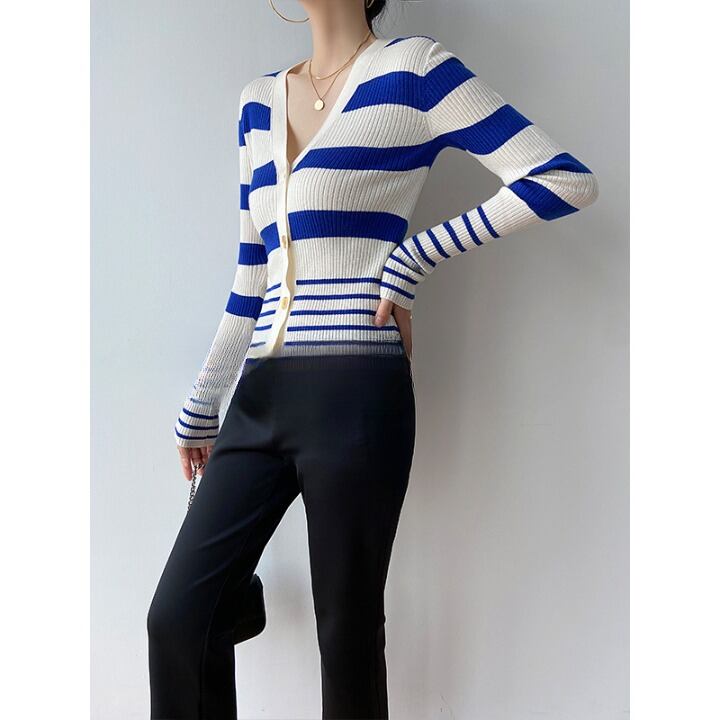 【送料無料】 ボーダーニット ボーダーカーディガン 大人 かっこいい スリム 韓国 レディース オルチャン トップス 金ボタン Vネック ニット カーディガン 可愛い 大人 かっこいい きれいめ 高級感 高見え おしゃれ お洒落 モテ 女っぽい 大人っぽい 上品 美人 エレガント ゴージャス オトナ女子 大人女子 インスタ映え 主役級 存在感 クール スタイルアップ シンプル 大人可愛い こなれ感 カジュアル きちんと セクシー 20代 30代 40代 女子会 トレンド 普段使い イベント 着回し